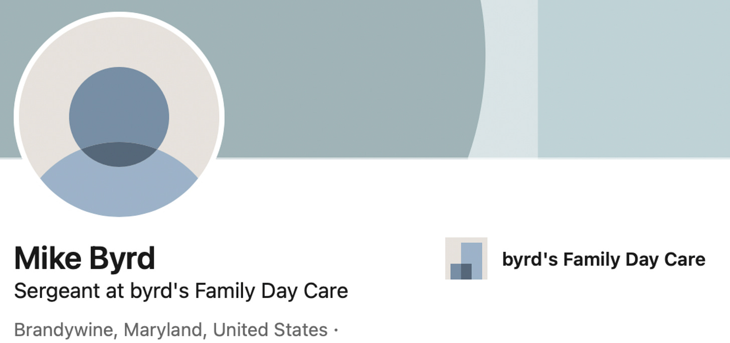 Byrd was a mere Sergeant when he posted on LinkedIn about the day care business. After he killed Ashli, he was promoted from Lieutenant to Captain.